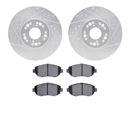 Dynamic Friction Company Front Brake Rotors Drilled and Slotted Silver with 5000 Advanced Brake Pads - 7502-75007