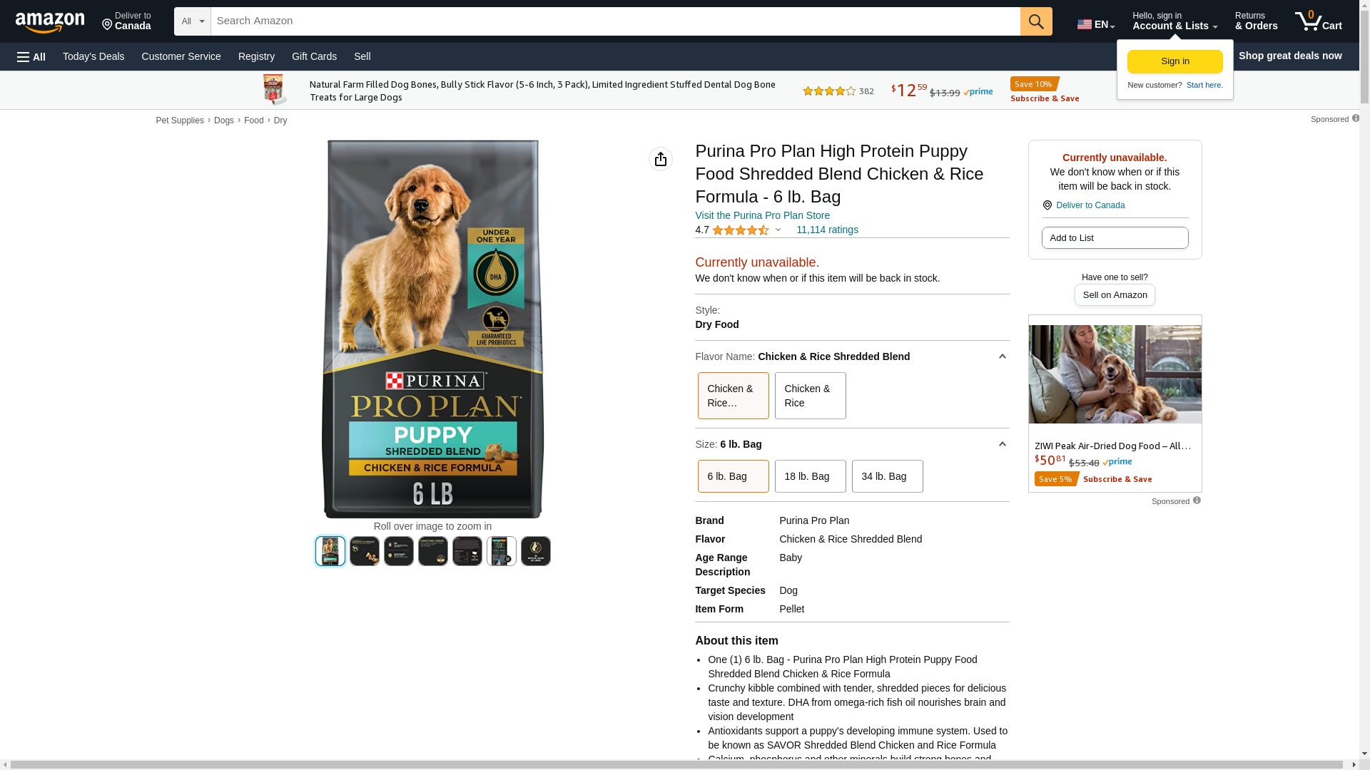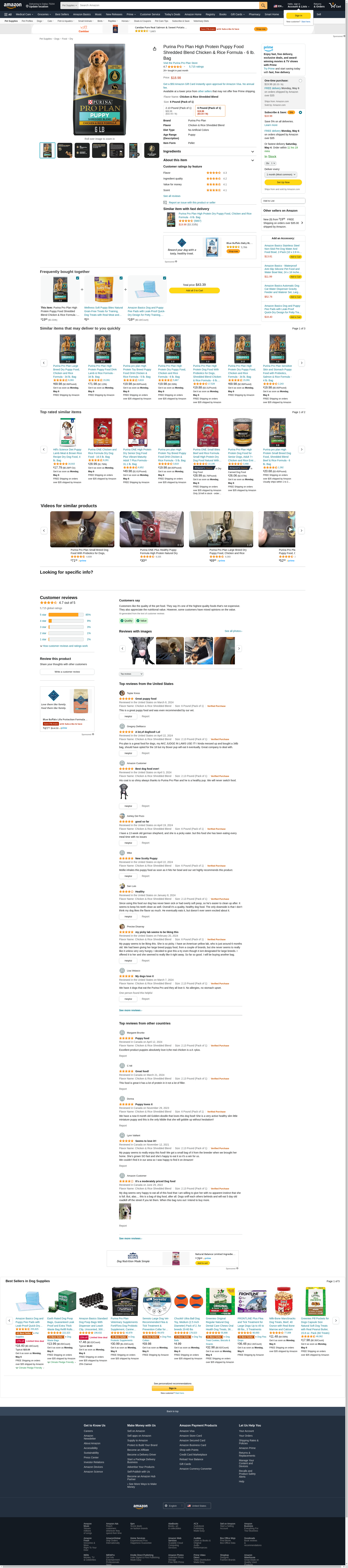 - One (1) 6 lb. Bag - Purina Pro Plan High Protein Puppy Food Shredded Blend Chicken & Rice Formula