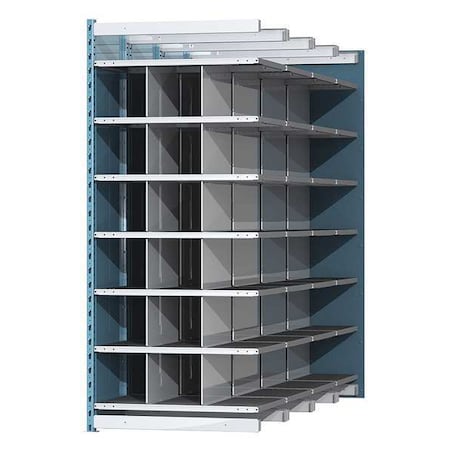 Hallowell Features: -Deep bin shelving. -Marine blue posts and sides color. -Backs, shelves and dividers color platinum. -High capacity H-post shelving. -Provide extra deep bin storage. -7 Shelves. -Add on unit. -Knock down. -Platinum backs, shelves and dividers. -Closed style. -900 lbs Shelf capacity. -Cold rolled sheet steel. -Ideal for storing long items. -Made in the USA. -Manufacturer provides 1 year warranty. -Overall dimensions: 87" H x 36" W x 96" D. AHDB18-96PB
