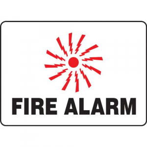 10" x 14" Aluminum Graphic Sign: "Fire Alarm" Clearly mark a fire alarm for emergency situations with this simple and effective signage. Aluminum (VA) Aluminum withstands wash downs, harsh elements, abusive conditions, and features good chemical, abrasion, and impact resistance. Aluminum is excellent for indoor and outdoor usage, making it ideal for a wide variety of industrial-strength applications. All Aluminum signs feature Accuform's TedLex liquid-based UV-protective coating, included at no charge. TedLex is perfect for indoor and outdoor use, prevents fading, and resists chemicals, abuse, and graffiti. Aluminum signs provide the strength of metal, yet never rust. Aluminum withstands wash downs, harsh elements, and abuse.