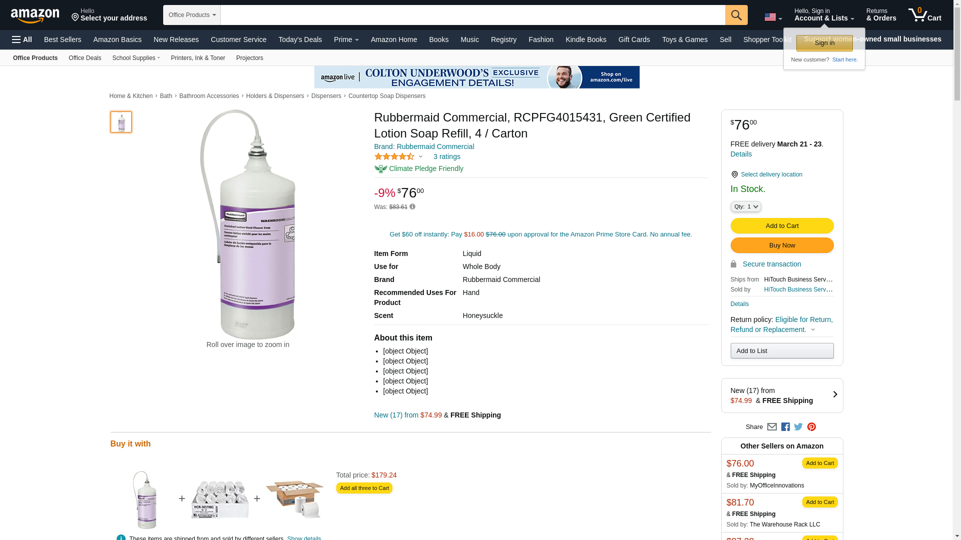 The Rubbermaid Commercial Green-Certified Lotion Soap for One Shot and Liquid Soap Dispensers is Green SealTM certified. The rich, pearlized soap for lotion dispensers is hypoallergenic for sensitive skin and provides the reliable clean you're looking for. Each hand soap refill averages up to 2,000 hand washes for reduced labor and soap costs. The lotion dispenser soap features a fresh, light honeysuckle scent. Soap Type: Liquid; Application: Hand Washing; Capacity (Volume): 1600 mL; Scent: Honeysuckle.