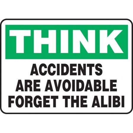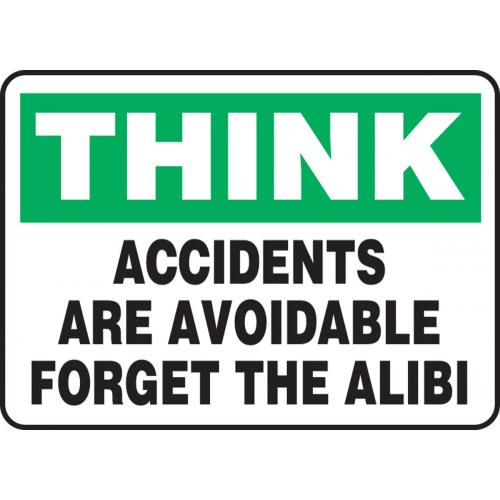 Think Safety Sign: Accidents Are Avoidable - Forget the Alibi 10" x 14" Adhesive Vinyl 1/Each - MGSH900VS - Jendco Safety Supply