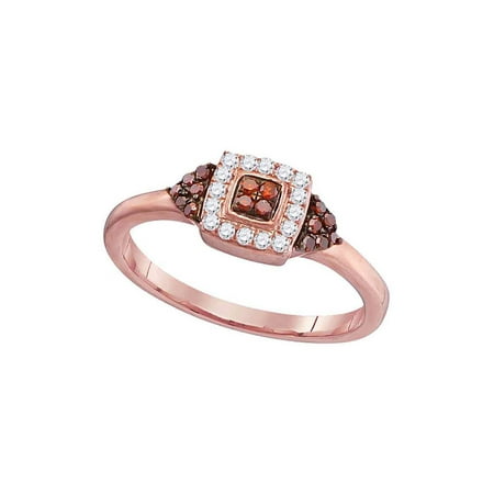 10kt Rose Gold Womens Round Red Colored Diamond Square Cluster Ring 1/5 Cttw. Combined diamond weight of 1/5 carats total weight represents a range of 0.18 - 0.22 cts. t.w.