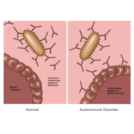 Gwen Shockey/Science Source Stretched Canvas Art - Normal Immune System & Autoimmune Disease - Medium 24 x 18 inch Wall Art Decor Size.