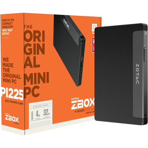 ZOTAC ZBOX pico PI225-GK Mini PC Fanless Passively Cooled, Intel Gemini Lake N4000, 4GB DDR4 Memory, 64GB Storage, Windows 10 Pro, ZBOX-PI225-GK-W2C