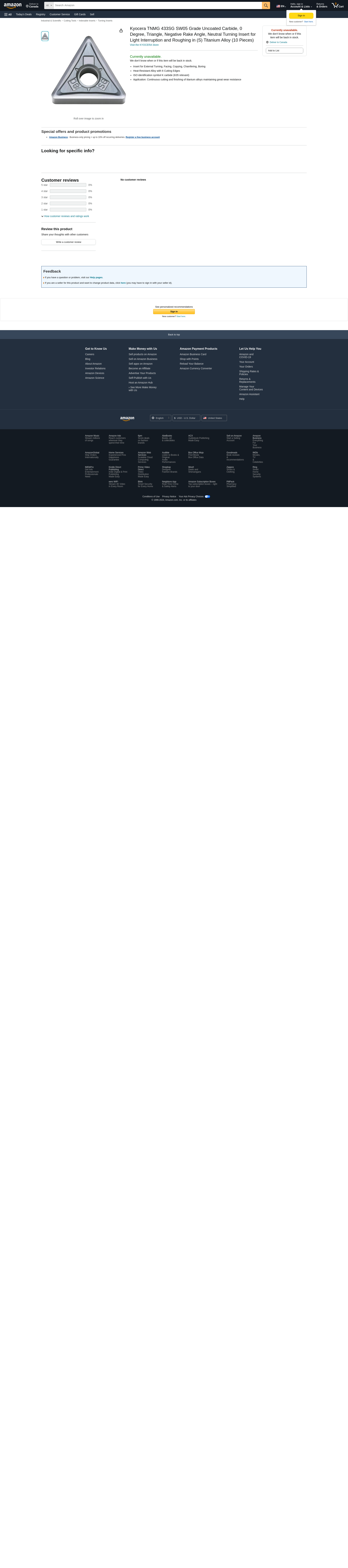 Kyocera TNMG 433SG SW05 Grade Uncoated Carbide, 0 Degree, Triangle, Negative Rake Angle, Neutral Turning Insert for Light Interruption and Roughing in (S) Titanium Alloy (10 Pieces)