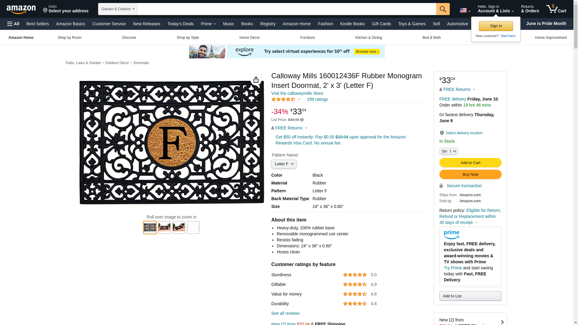 Calloway Mills 160012436F Rubber Monogram Insert Doormat, 2' x 3' (Letter F)