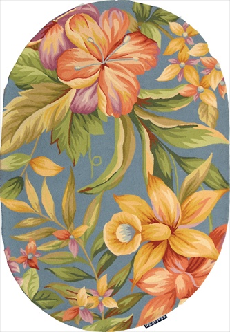 Blue Floral Wool Area Rug (7 ft. 6 in. x 9 ft. 6 in. Oval)