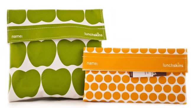 Lunch Skins LSK-KIT21 Lunchskins Sandwich Bag - in Green Apple and Snack Bag - in Mango Polka Dot