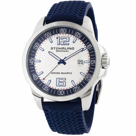 Stuhrling Original 219.3316C16 Mens Monterey Diver Wwatch Blue Dial on Blue Rubber Strap