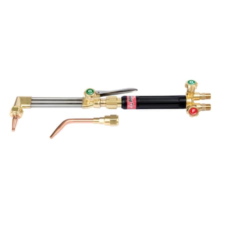 Cutting torch and handle are ready for multiple gas options; Oxy-Acetylene, Propane, Butane, Natural & LP Gases, & Propylene Ergonomic color coded knobs (Acetylene & Oxygen) Meets or exceeds industry safety standards Cut 1/8" (3.2 mm) to 5" (127 mm) steel Heat using multiple heat nozzles Weld up to 1/2" (12.7 mm) steel Constructed with high strength alloys, heavy duty stainless steel and durable brass 1 Year warranty