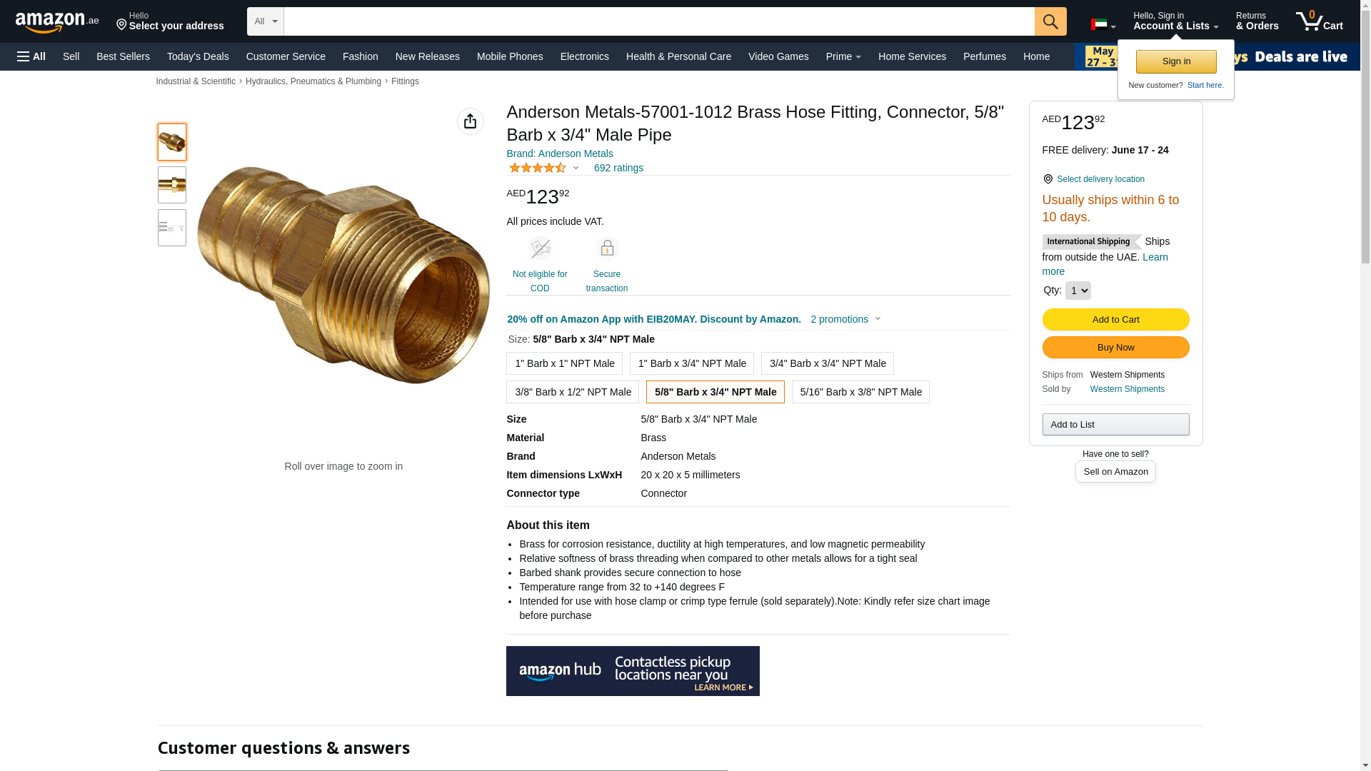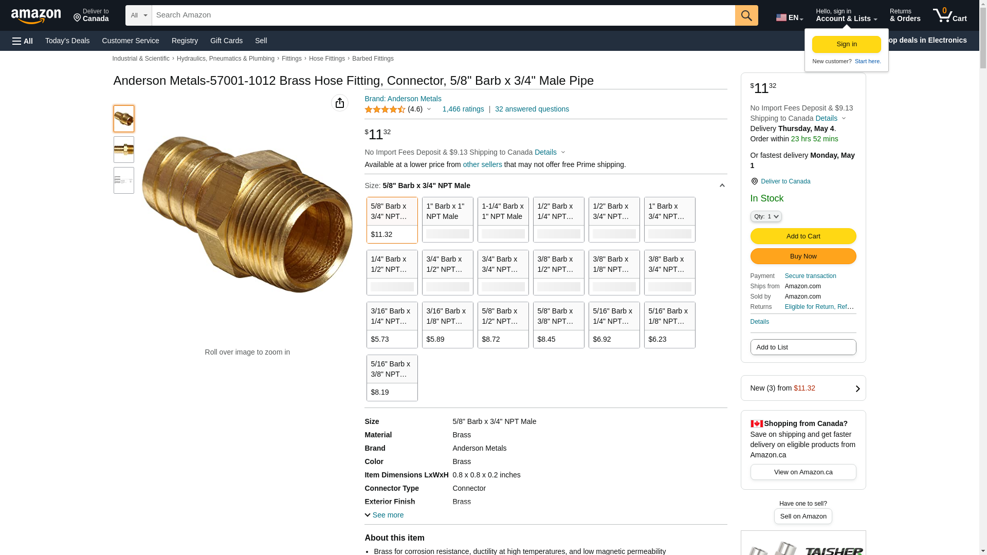 Anderson Metals Brass Hose Fitting, Connector, 5/8" Barb x 3/4" Male Pipe. Brass for corrosion resistance, ductility ...