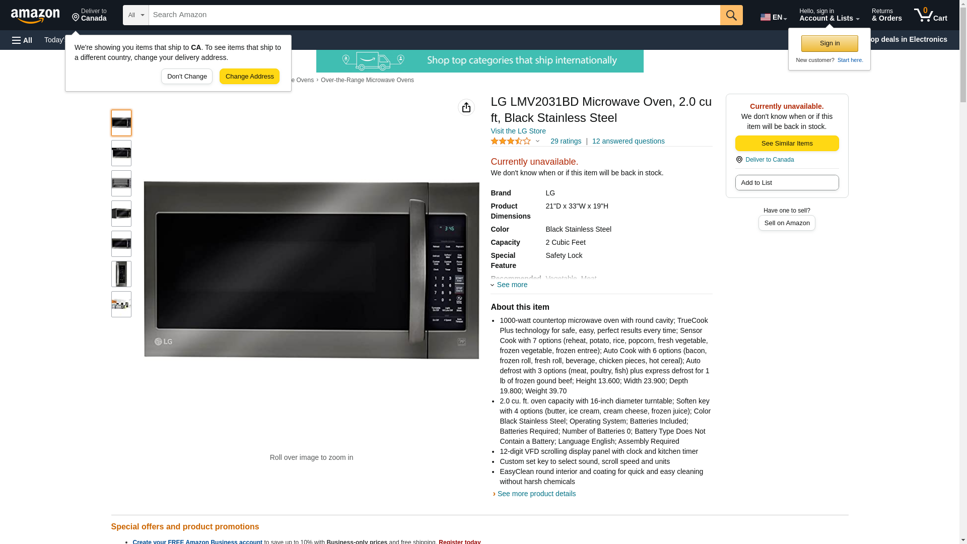 The LG LMV2031BD 2.0 Cu. Ft. 1000 Watts Over-the-Range Microwave Oven, in black stainless steel, cooks perfectly and looks good while doing it. Its has SmoothTouch Glass Controls and Displayh is Green, 4 Digit LED. Bi-Level Cooking Rack and child lock is available for safety purpose. With the EasyClean round interior and coating, you can have quick and easy cleaning without using any harsh chemicals. Plus, sensor cooking technology senses humidity levels within the oven and automatically adjusts cooking time and performance to provide superior heating performance. See, beauty and brains can co-exist, quite deliciously. Limited Warranty 1 Year Parts and Labor (In Home Service) 10 Years Limited on Magnetron (In Home Service)