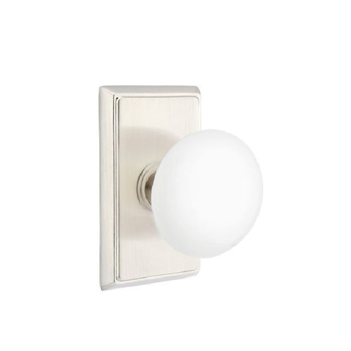Emtek 8221IWUS15 Ice White Knob Privacy with Rectangular Rose Satin Nickel Finish