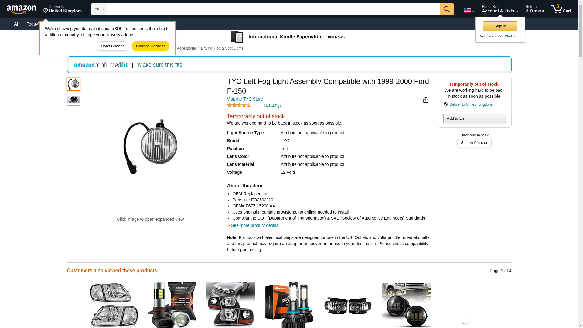 TYC Left Fog Light Assembly Compatible with 1999-2000 Ford F-150