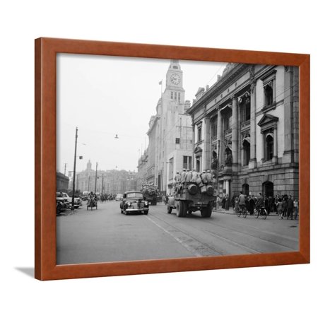 <ul> <li>Title: Truckloads of Troops on City Street</li> <li>Paper Type: Photographic Print</li> <li>Product Type: Framed Art Print</li> <li>Framed in SOHO Pecan</li> <li>Arrives ready-to-hang for fast, simple installation</li> <li>Framed Size: 26x20 in.</li> <li>Handcrafted in the USA</li> </ul>