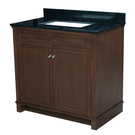 <ul> <li>Transitional design negotiates between classic and modern interiors</li> <li>French Grey finish with old world accents and brushed nickel hardware</li> <li>Solid wood frame, and stain-resistant quartz</li> <li>Overall Dimensions: 36-5/8 inch W x 22-1/16 inch D x 34-1/4 inch H</li> <li>Vanity set includes: vanity base in American Walnut, Black Granite sinktop, and white ceramic undermount sink, or base in French Grey, Off-white Quartz sinktop, and white ceramic undermount sink</li> </ul>