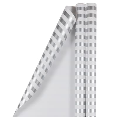 JAM PAPER Gift Wrap, Striped Wrapping Paper, 25 Sq Ft per Roll, Silver & White Stripes, 2/Pack | Quill.com