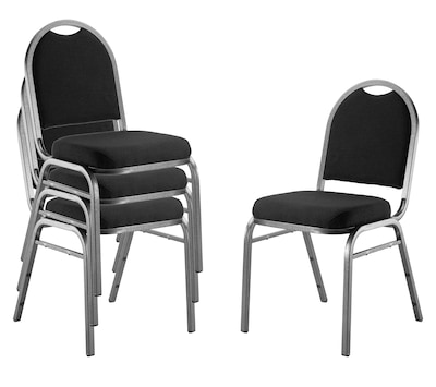 NPS 9200 Series Dome-Back Fabric Padded Stack Chair, Ebony Black/Silvervein, 4 Pack (9260-SV/4) | Quill.com