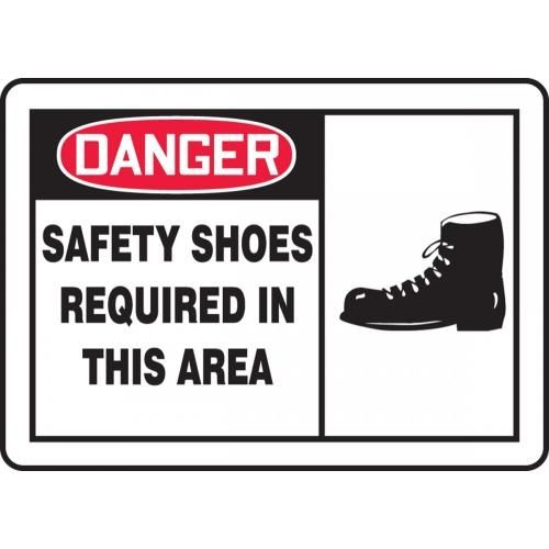 Accuform MPPE019VP Sign, Danger Safety Shoes Required in This Area", 10" Length x 14" Width x 0.055" Thickness, Plastic, 10" x 14", Red/Black on White