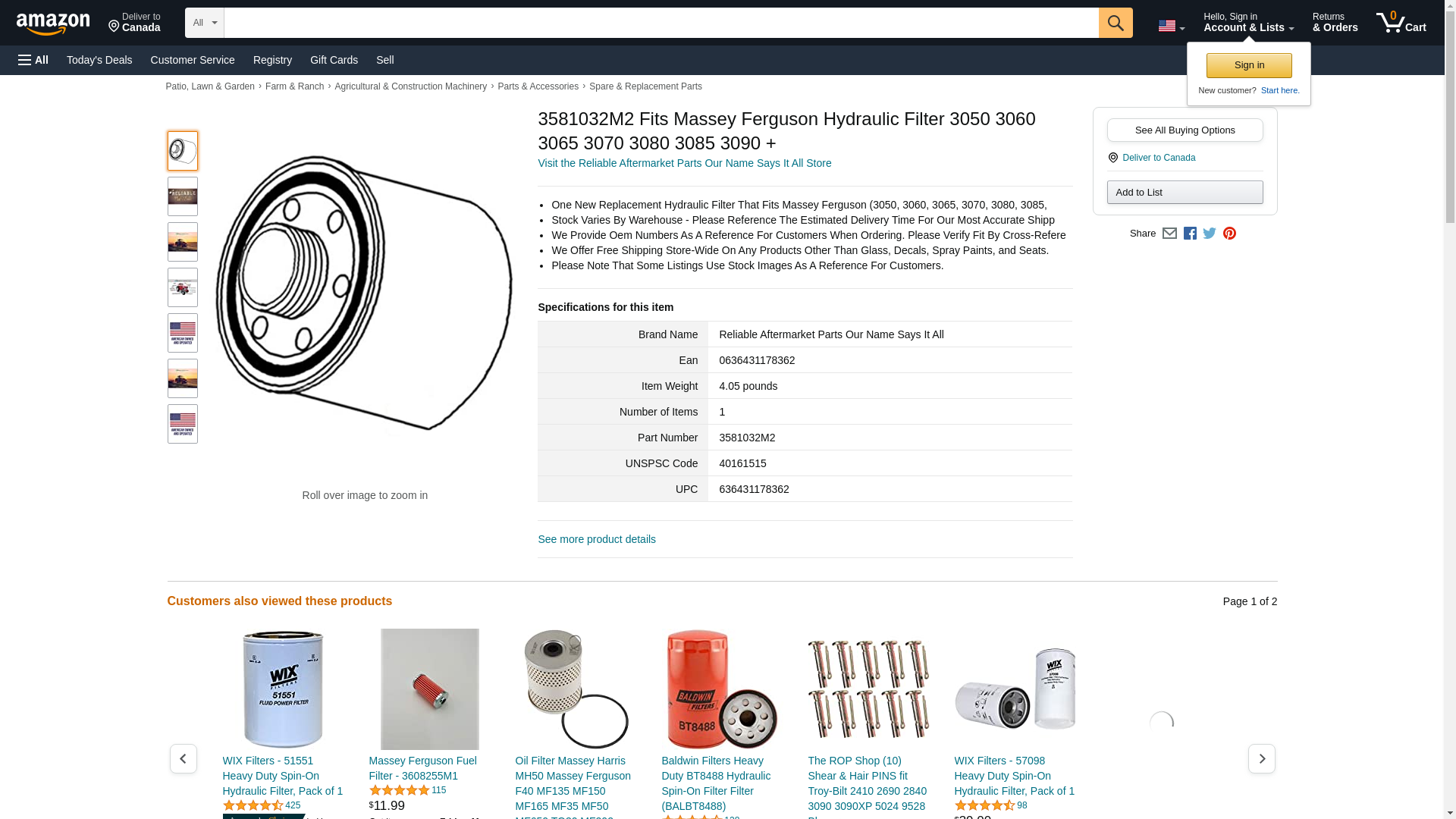 One New Replacement Hydraulic Filter That Fits Massey Ferguson (3050, 3060, 3065, 3070, 3080, 3085, 3090, 3095, 3115, 3120, 3125, 3140 All S/N Replaces Part Number: 3581032M2<br> All OEM part numbers and logos are to be used for identification purposes only