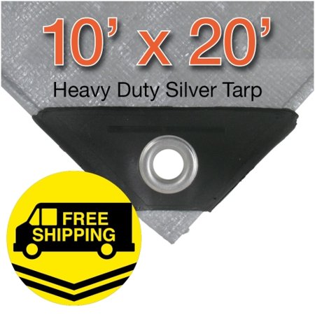 Super Heavy Duty Silver Tarps 10' x 20' Sturdy plastic corner bars Heavy duty double laminated coating Sun & fade resistance Water, rot & tear proof Heat sealed seams Extra strong weave Rust proof grommets appr.
