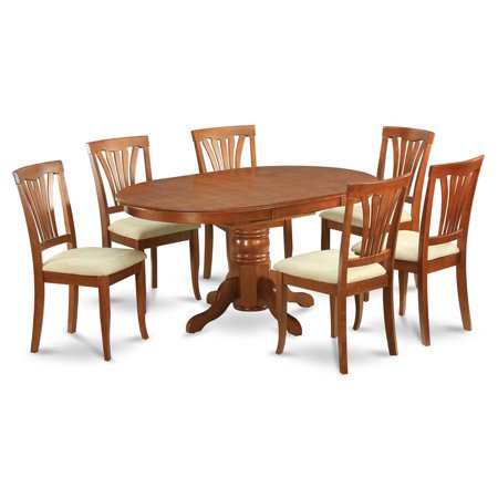 East West Furniture AVON7-SBR-C 7 Pc Avon Dinette Table Featuring Leaf and 6 Cushion Kitchen Chairs.