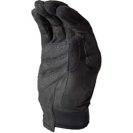 <br /> <b>HWI Gear KTS100 Touchscreen Hard Knuckle Tactical Gloves, Black:</b> <ul> <li>Leather</li> <li>Touchscreen capable synthetic leather in fingertips utilizing Touch Tool design</li> <li>Ergonomic palm reinforcement of highly abrasion-resistant Clarino grip material</li> <li>Durable, flexible, moisture-wicking knit material on back of hand</li> <li>Rugged premium Clarino synthetic leather palm</li> </ul>