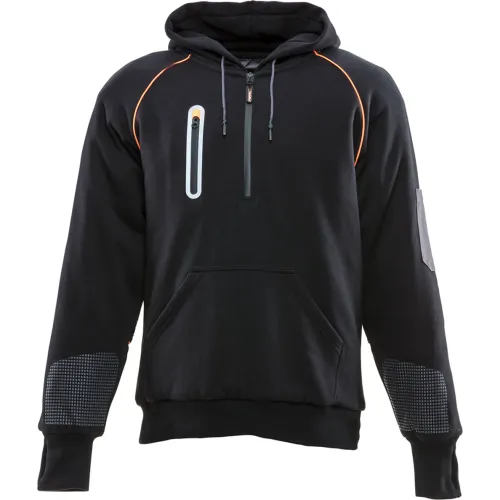 - EASY WEAR & CARE: Pull your arms through the sleeves for a fast and functional sweatshirt hoodie. You can use the 1/2 zip-up closure to pull the sweatshirt closed on your torso. The fabric of the hoodie is machine washable for long-lasting work clothing.