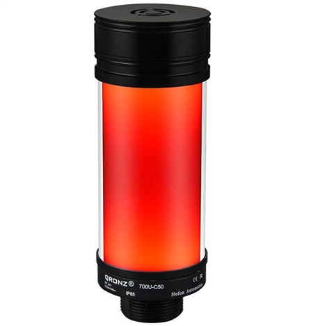 Qronz CL50BK-AFRGB-QD12 LED tower light has a 52mm diameter. Rated for 12V DC. 7 possible colors. Male M12 quick disconnect. 95dB audible alarm.