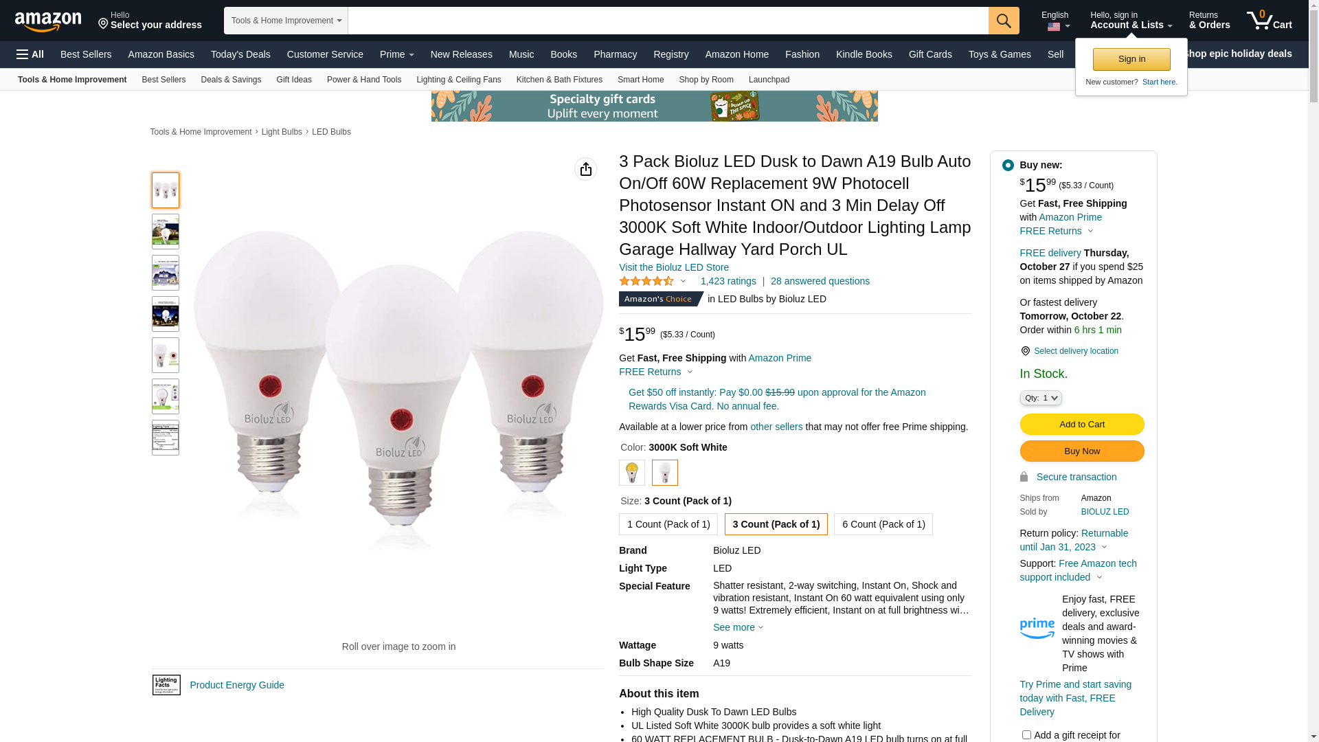 Bioluz LED introduces our new Dusk to Dawn A19 light bulbs. With a standard medium screw base and near identical incandescent light quality, our Dusk to Dawn bulbs are the perfect bulb to help save energy by automatically turning on at dusk and turning off at dawn - no more forgetting to turn the lights on or off. Replace your high-energy consuming incandescent bulbs, or your harsh, mercury containing CFLs. <br> <br> Available in 60W equivalent using only 9 watts, Bioluz LED’s new Dusk to Dawn bulbs offers superior energy savings versus the competition at a price point that makes sense today. <br> <br> Don’t settle for less! <br> <br> Bioluz LED Dusk to Dawn bulbs offer warm and bright light and offer aesthetically pleasing designs combined with quality and energy efficiency. <br> <br> What are Lumens and Kelvins? <br> <br> Lumens are a measurement of how much light is generated – or brightness – each lumen emits approximately the same amount of light as one candle. <br> <br> Kelvin represents the "color" (which is based on the temperature) of the light. <br> <br> Bioluz LEDs are manufactured so that our 2700K (2700 Kelvin) bulbs are nearly identical in color to incandescent bulbs. Our 3000K bulbs are designed to match halogen bulbs. <br> <br> We’ve found that bulbs which are 4-5000K generates a bluish tint on objects (like at a hospital or office building) and are not as comforting in a home. <br> <br> Many brands sell and market higher Kelvin (4-5000) bulbs with lower lumens to make them "appear" brighter. Bioluz LED manufactures the correct color bulbs with exceptionally bright, energy efficient LEDs, so you get the color and brightness you're accustomed to without the harsh effect of higher color temperatures.