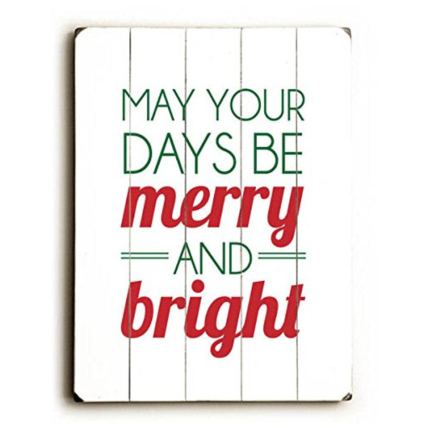 One Bella Casa 0004-4698-38 12 x 16 in. Merry & Bright Planked Wood Wall Decor by Amanda Catherine