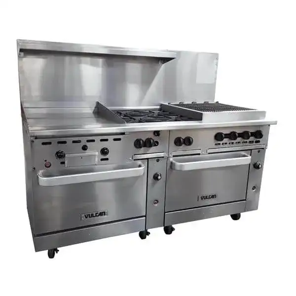 As an Amazon Associate, we earn from qualifying purchases. Vulcan 72SC-24GT4B24CB Restaurant Gas Range | CKitchen.com Vulcan . 72SC-24GT4B24CB Gallery Attributes Brand name, Manufacturer name, Manufacturer, Attribute07Vulcan Attribute00225000 - 325000 Attribute01294,000 BTU Attribute023 - 5 Attribute0330,000 BTU burners Attribute044 Burners Attribute05Convection & Standard Oven Attribute06Tube Attribute08, countryOfOriginUSA Attribute09Convection Attribute10NSF Attribute11Thermostatic Attribute12Gas Attribute13(1) 24" Charbroiler & (1) 24" Griddle Attribute1472 Attribute1558 Attribute1634 AttributeKey00Total BTU AttributeKey01BTU AttributeKey02Number of Burners AttributeKey03Burner Type AttributeKey04Quantity of Burners AttributeKey05Range Base Style AttributeKey06Burner Style AttributeKey07Brand AttributeKey08Made in AttributeKey09Oven Type AttributeKey10Certifications AttributeKey11Control Type AttributeKey12Heat AttributeKey13Range Configuration AttributeKey14Width (in) AttributeKey15Height (in) AttributeKey16Depth (in) Extra Product NameVulcan 72SC-24GT4B24CB Restaurant Gas Range | CKitchen.com moq, multiple, tierMinQty11 MPN, SKU72SC-24GT4B24CB qtyInStock0 tierPrice123214.0000 Distributor offers SellerSKUMOQIn stockMultiplePrices ckitchen.com72SC-24GT4B24CB111 @ $23214.00