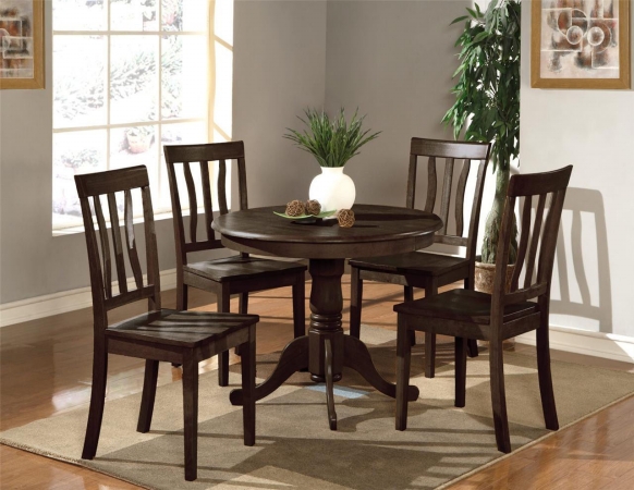 - MODERN DINING TABLE SET FINISH: Featuring comfortable seats made of Cappuccino Wood and sturdy Pedestal legs, this dining room table set showcases a stylish and comfortable design. The body of the wood dining chairs and the attractive wood table are crafted from top-quality Cappuccino Finish wood, creating the perfect color combination that adds a magnificent and elegant touch to your kitchen.