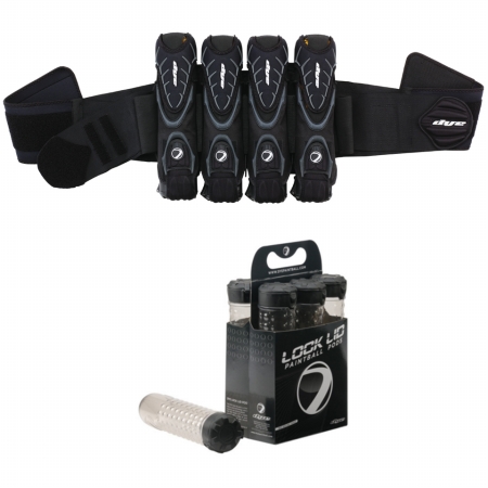 Dye Paintball dye-tac-4 Plus 5-black-lock-lid Precision Assault Pack Pro 4 Plus 5 Paintball Harness with Lock Lid Pods -