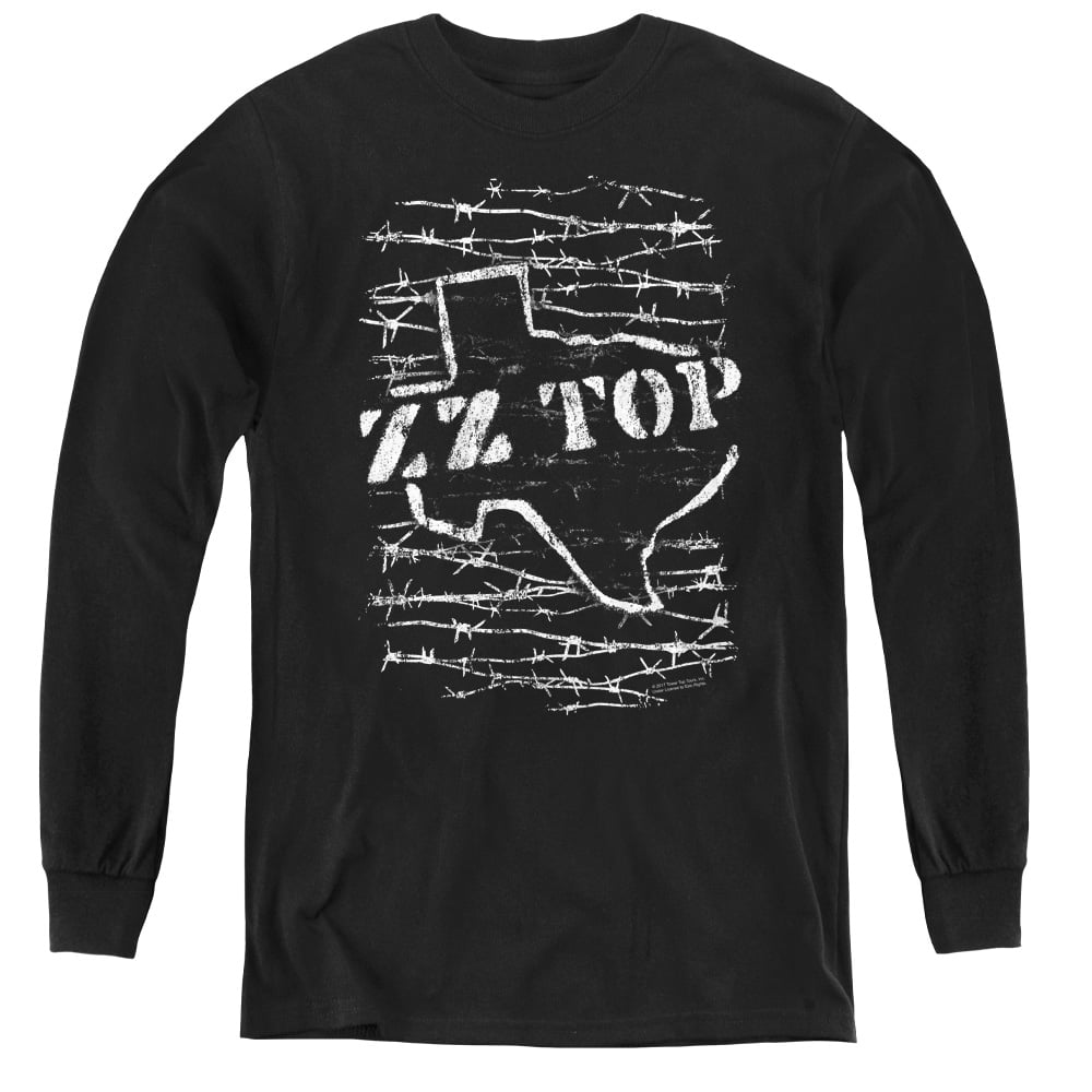 Trevco ZTOP109-YL-3 ZZ Top & Barbed Youth Long Sleeve T-Shirt, Black - Large