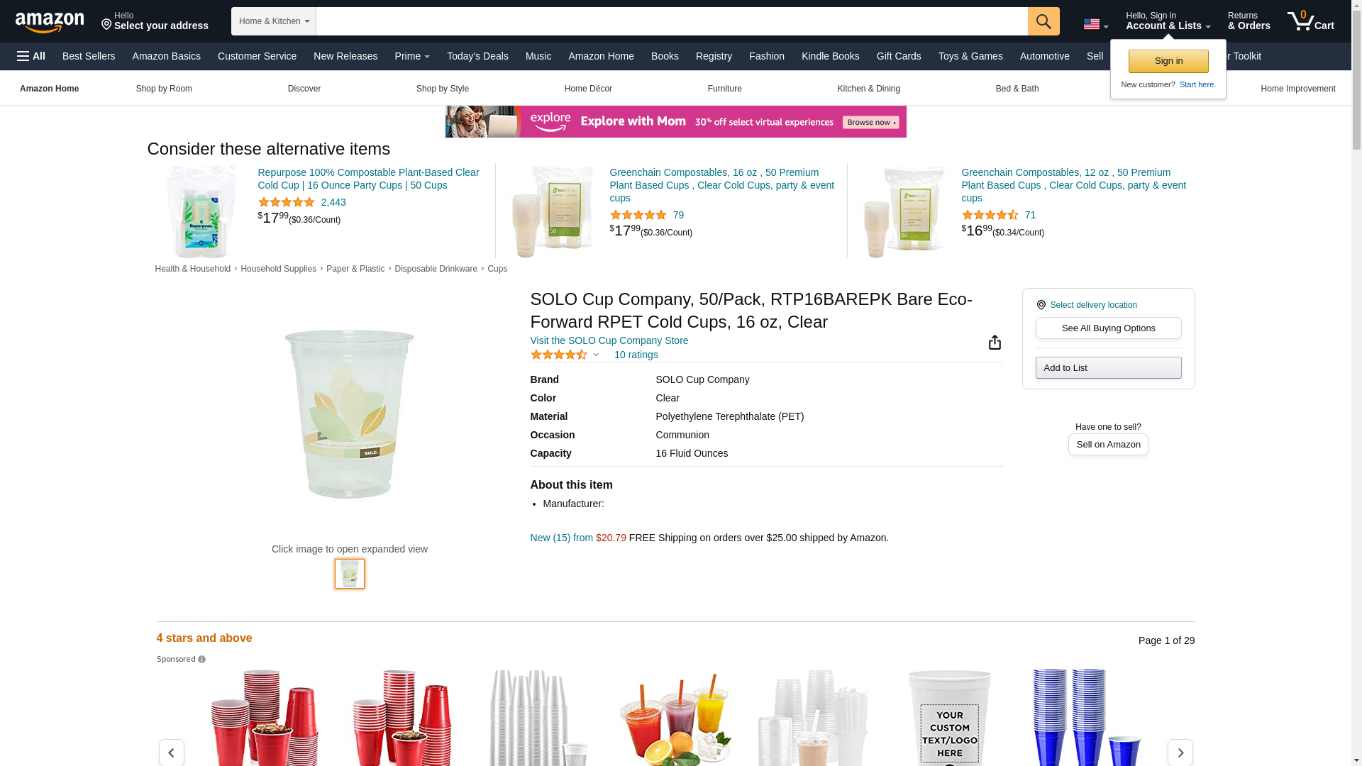 - Bare Eco-Forward Rpet Cold Cups, 16-18 Oz, Clear, 50/Pack, 1000/Carton