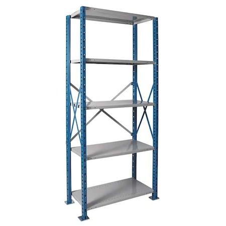 <p>Metal Shelving, Starter, Open, Industrial, Shelving Gauge 18, Overall Width 36 In., Overall Depth 24 In., Overall Height 87 In., Shelving Frame Material Steel, Shelving Material Steel, No. of Shelves 5, Shelf Capacity 1250 lb., Marine Blue/Light Gray, Unassembled, Shelving Post Gauge 14, 1-1/2 In., Finish - Shelving and Racks Powder Coated, Includes (5) Shelves, (4) Posts, (20) Clips, (3) Pair of Braces, (4) Back Sway Brace Clips, (4) Foot Plates, Shelf Style Solid, Number of Drawers 0</p><p><b>Specifications: </b><ul><li>Finish: Powder Coated</li><li>Depth: 24"</li><li>Includes: (5) Shelves, (4) Posts, (20) Clips, (3) Pair of Braces, (4) Back Sway Brace Clips, (4) Foot Plates</li><li>Shelf Adjustments: 1-1/2"</li><li>Gauge: 18</li><li>Shelving Type: Starter</li><li>Material: Steel</li><li>Green Environmental Attribute: Minimum 30% Post-Consumer Recycled Content</li><li>Color: Marine Blue/Light Gray</li><li>Item: Plastic Shelving</li><li>Shelf Capacity: 1250 lb.</li><li>Number of Shelves: 5</li><li>Shelving Style: Open</li><li>Width: 36"</li><li>Height: 87"</li><li>Green Certification or Other Recognition: GREENGUARD Certified</li></ul></p>