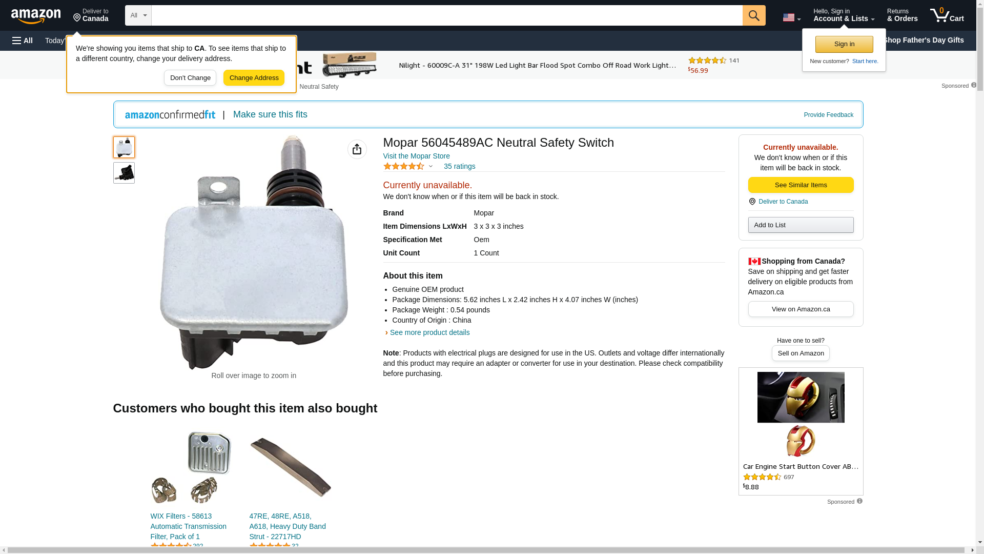 Mopar 56045489AC Neutral Safety Switch