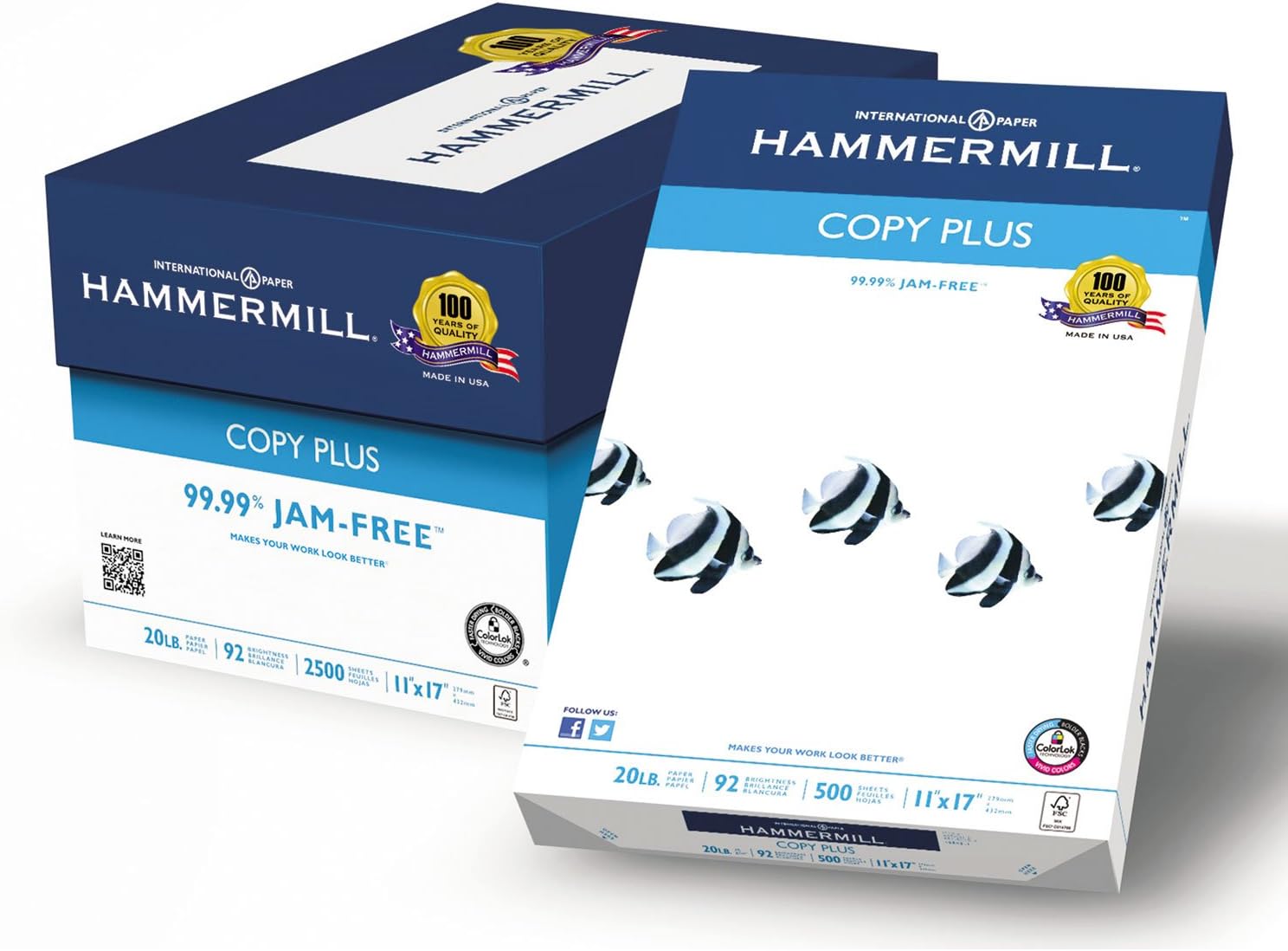 Hammermill 105023 Copy Plus Copy Paper, 92 Brightness, 20lb, 11 x 17, White, 500 Sheets/Ream