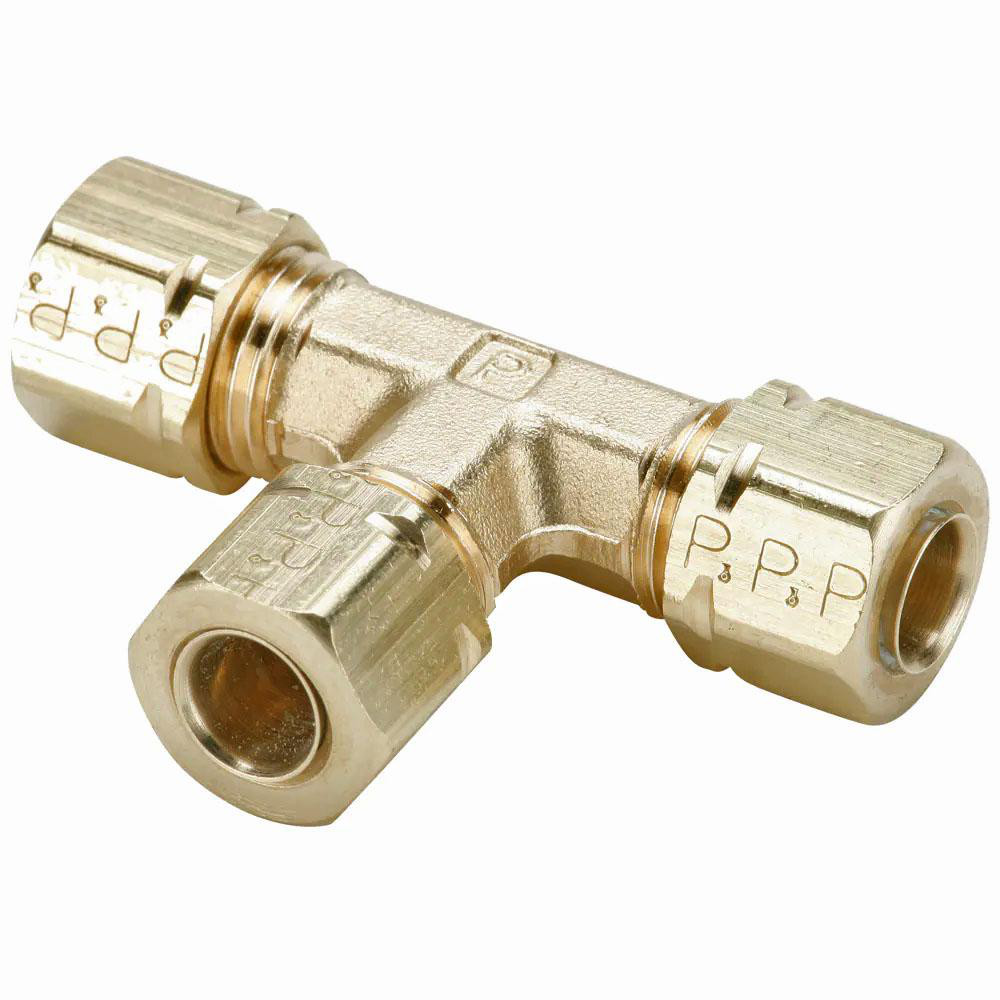 Parker 164CA-6-4-4 Compress-Align Compression Fitting, Tube to Tube, Forged Brass, Compression Tee, 3/8" and 1/4"