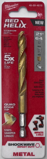 Milwaukee Electric Tool 48-89-4618 Twist Impact Drill Bit, 21/64" Diameter x 4.49" L, 2-47/64", 1/4" Hex Shank, 135 Degree