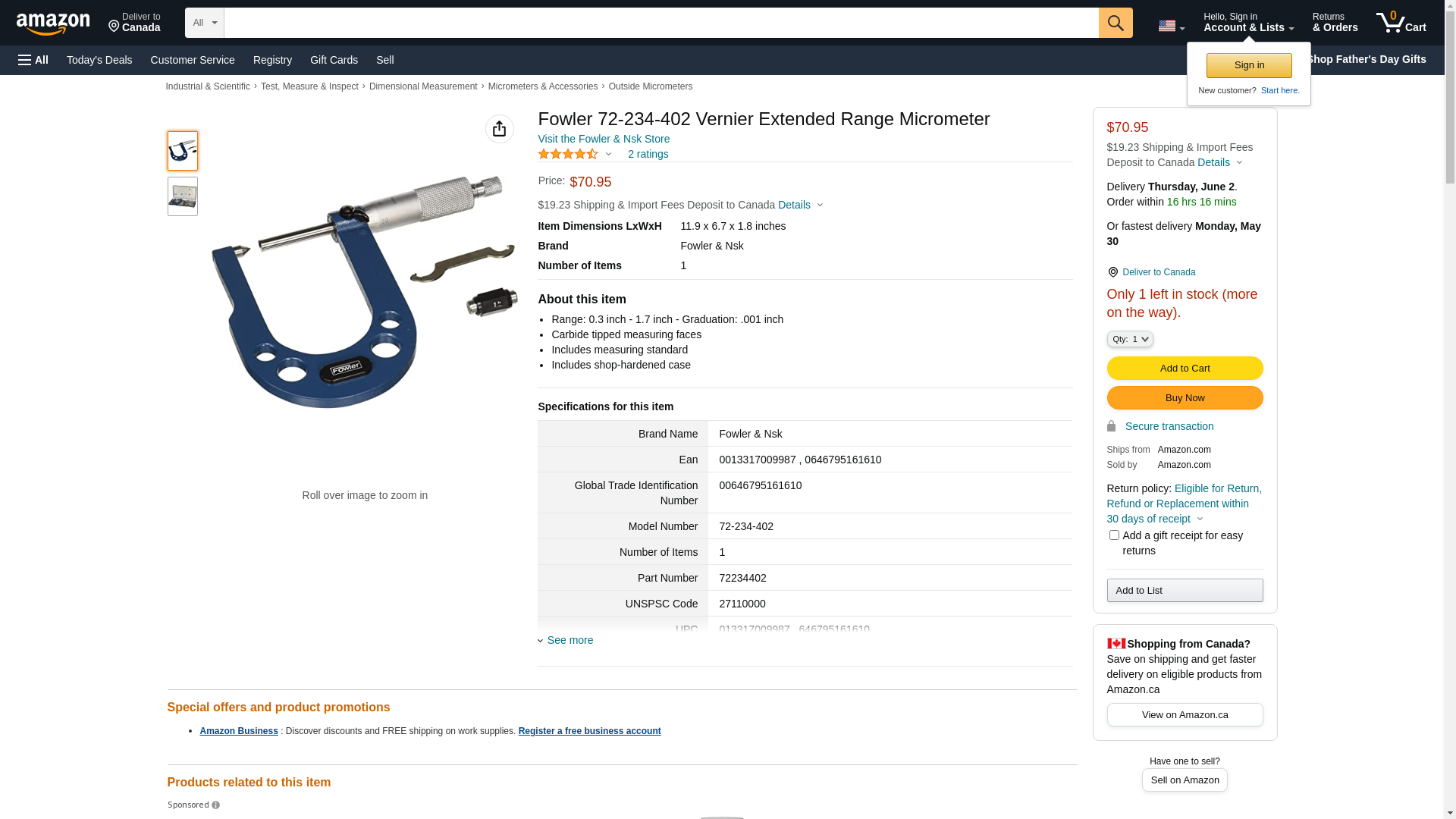 Order 72-234-402-0 by Fowler Vernier Disc Brake Micrometer - US Mega Store