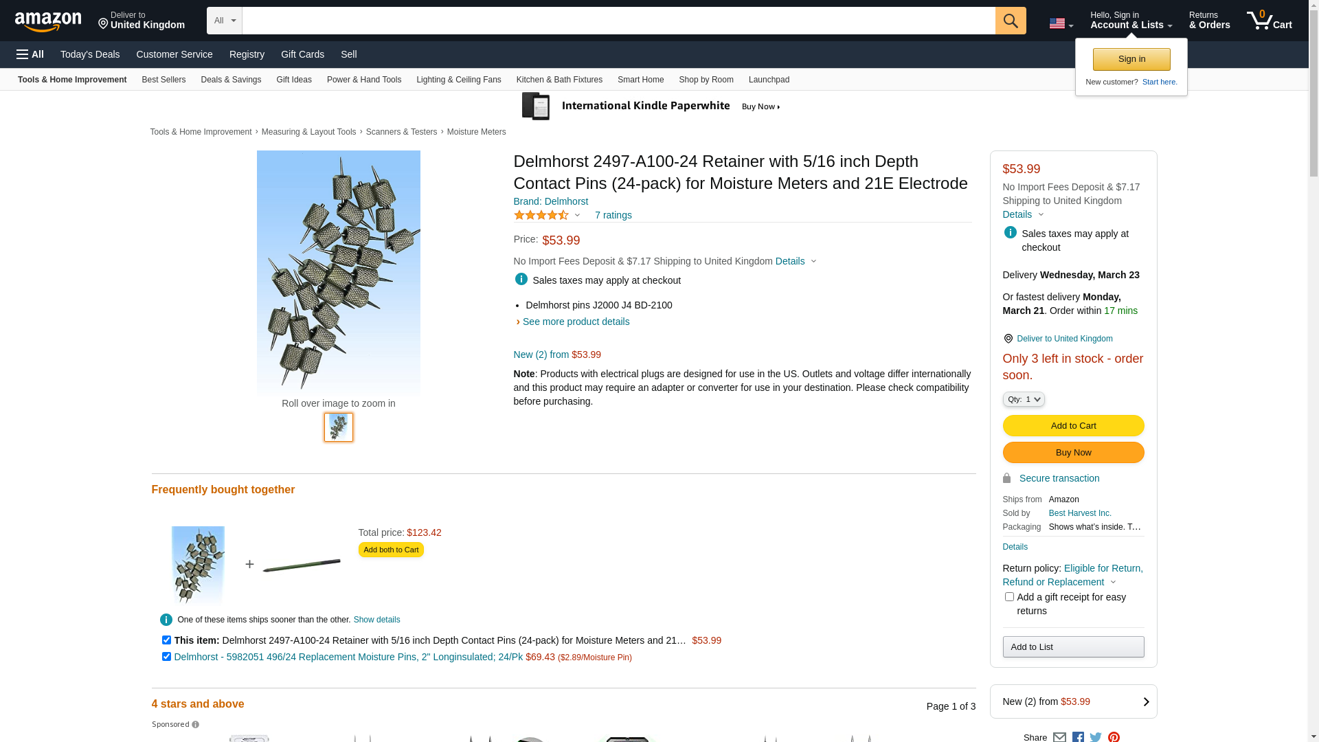 Delmhorst 2497A-100-24 Retainer with 5/16 inch Contact Pin (24-pack) for Moisture Meters and 21E Electrode. Warning: This product can expose you to chemicals which is [are] known to the State of California to cause cancer and birth defects or other reproductive harm.