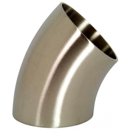 B2WK Stainless Steel 45 Degree Weld Fittings are available with either a mill ID/OD or a 32Ra ID/OD polished finish in your choice or 304 or 316L stainless steel.<br><br>These Buttweld 45 Degree Weld Elbows are manufactured to very high tolerances via hydroforming. Hydroforming results in a more uniform fitting that is easier to weld and polish. This manufacturing method allows us to supply a superior quality fitting regardless of the application. Suitable for use in applications ranging from food and beverage, dairy, and pharmaceutical to marine and automotive.<br><br>These fittings have earned the 3A symbol, which requires an annual assessment to make certain each product conforms in all respects to the published standard. The 3A Standard was created by the dairy industry as a voluntary benchmark for product performance and safety. The standard, collaboratively developed by a group of processors, suppliers, regulatory officials, and sanitation specialists, is generally accepted by federal, state and local regulatory authorities.