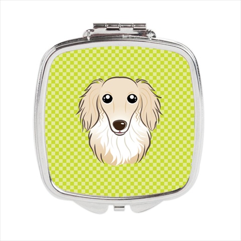 Carolines Treasures BB1274SCM Checkerboard Lime Green Longhair Creme Dachshund Compact Mirror, 2.75 x 3 x .3 In.