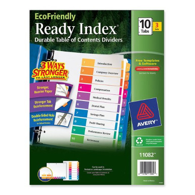 Buy Avery Dennison AVE11082 As low as $9.46 in bulk In stock Avery Ecofriendly Ready Index Table Of Contents Divider - 10 Tab[s]/set - 8.50" X 11" - 30 / Pack -