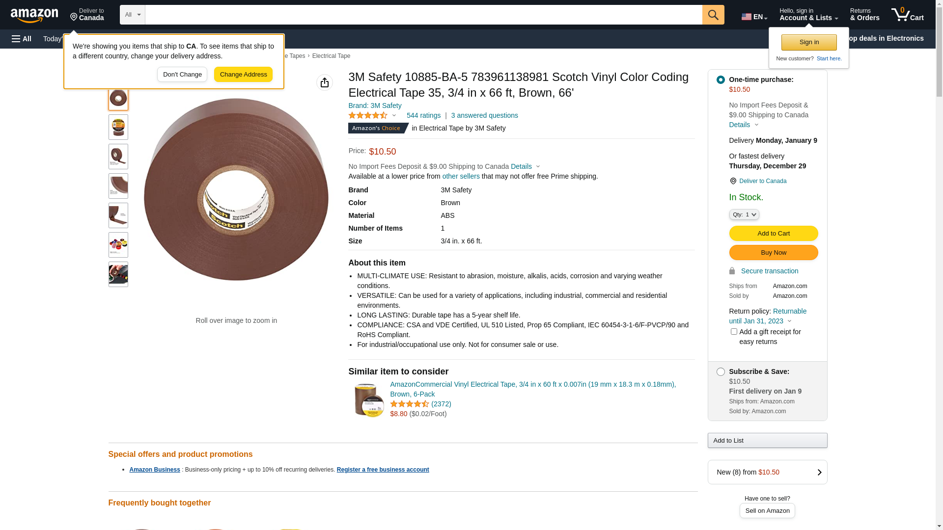Scotch Vinyl Electrical Tape 3/4 " X 66 ' 18 C Brown