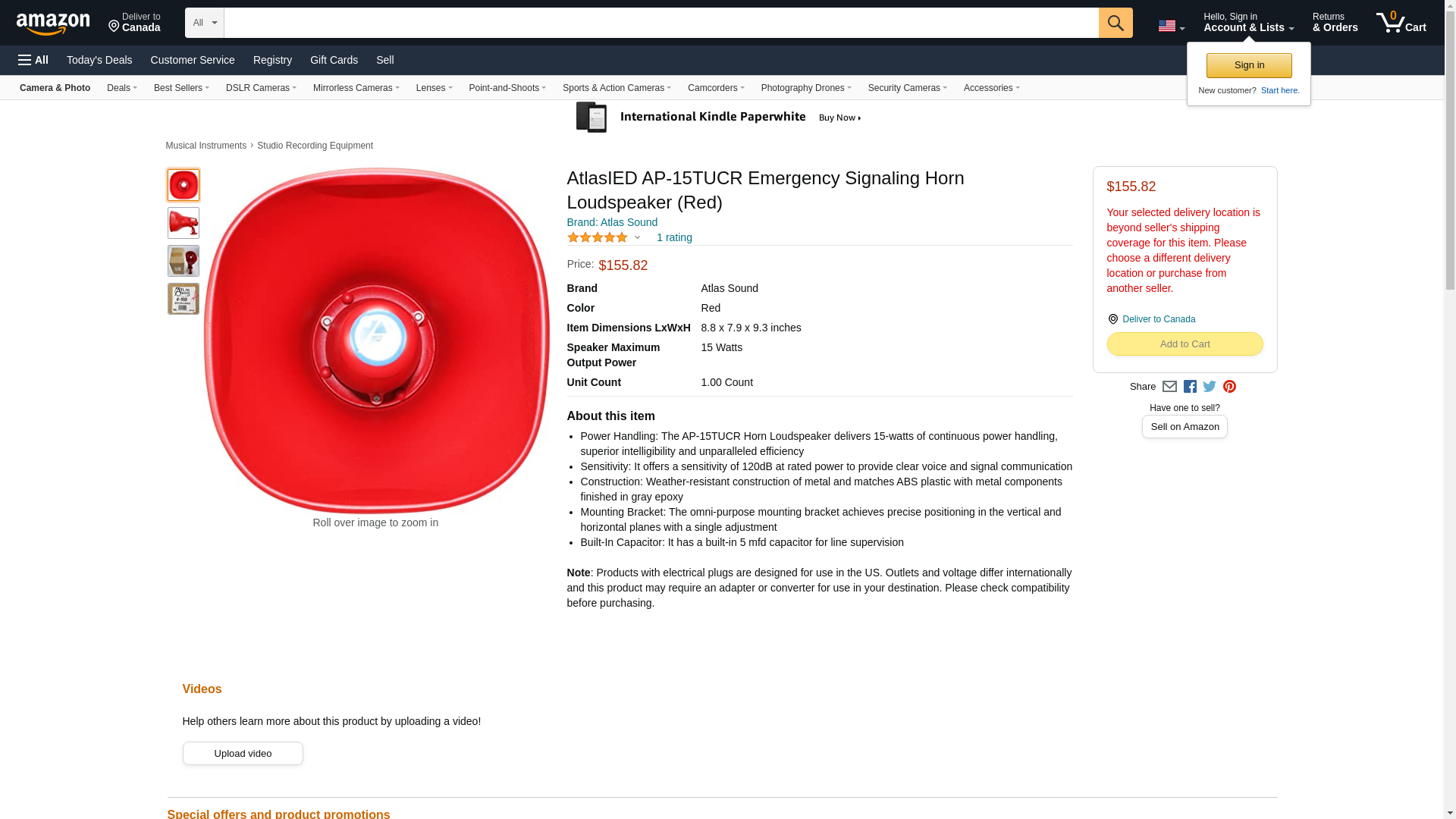 Atlas Sound Emergency Horn Speaker With 15-Watt 25V/70.7V Transformer And Line Supervision Capacitorability - Red Rohs Compliant: Yes - AP-15TUCR