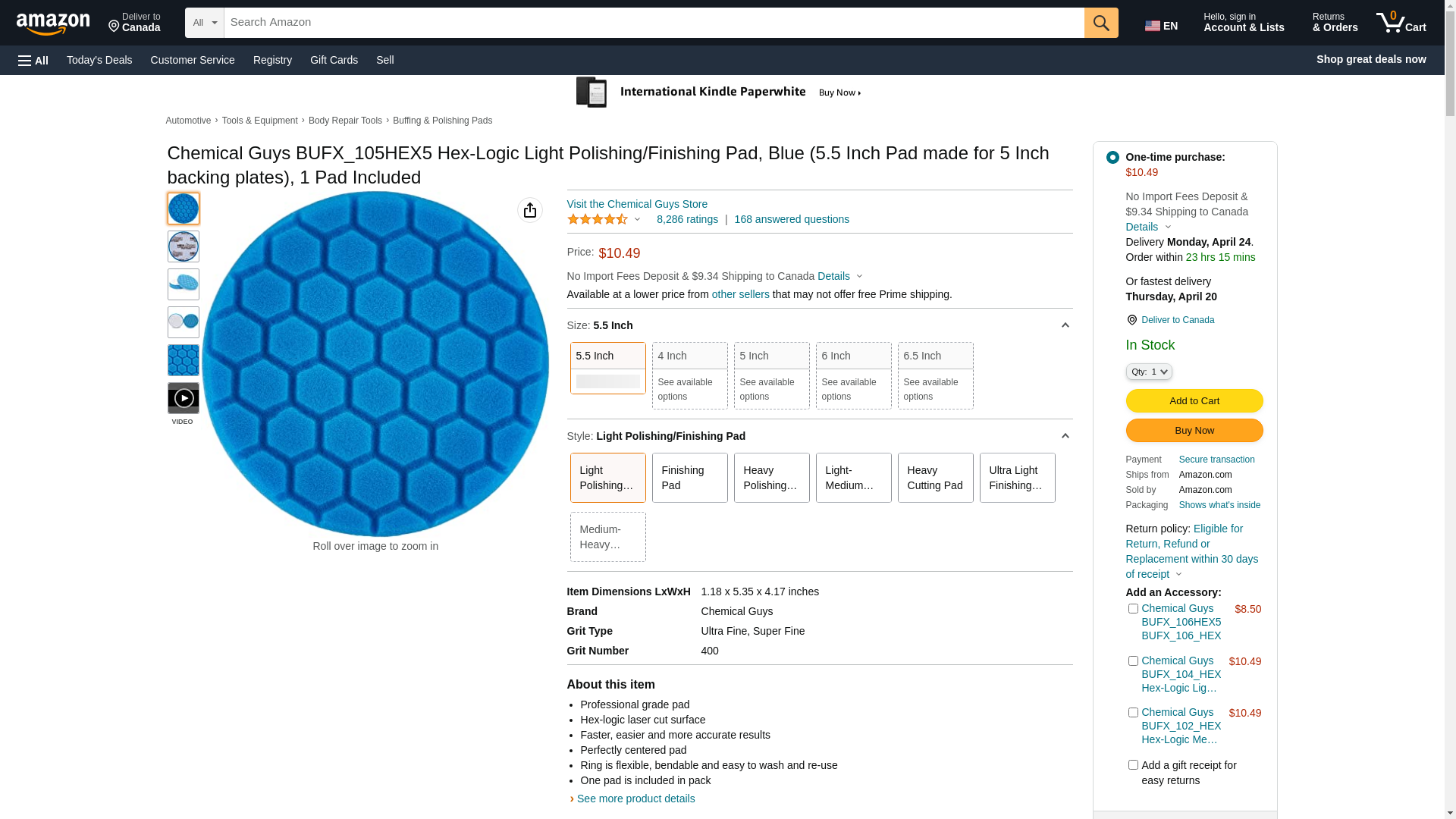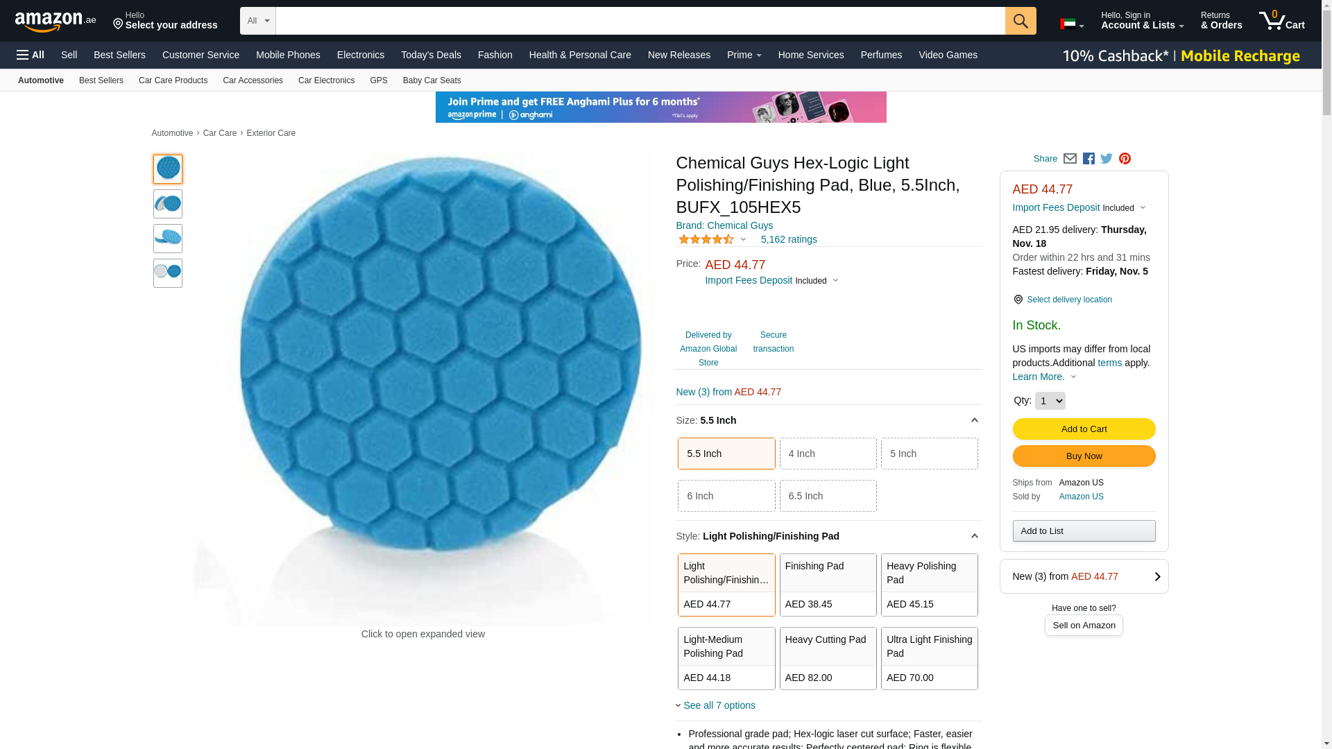 Chemical Guys BUFX_105HEX5 Hex-Logic Light Polishing/Finishing Pad, Blue (5.5 Inch Pad made for 5 Inch backing plates), 1 Pad Included